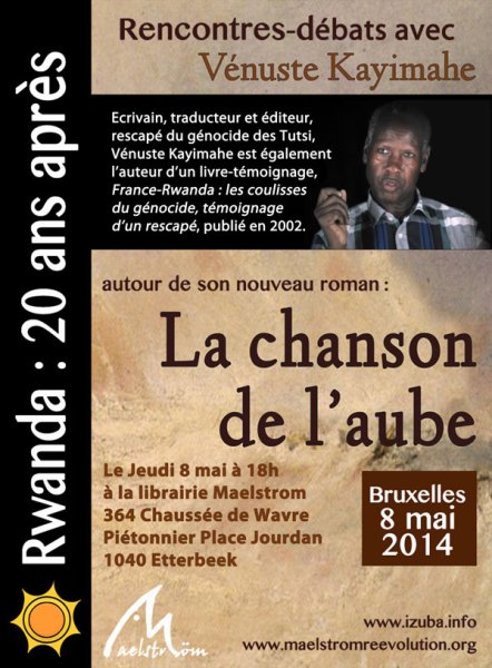 A l’occasion de la sortie de son roman, La chanson de l’aube, - et dans le cadre des 20e commémorations du génocide des Tutsi - Vénuste Kayimahe effectue une série de rencontres et de présentations en Belgique.