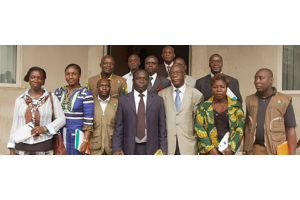 Image d’illustration : Dr N’Gouan Patrick, Coordonnateur National de la CSCI (en costume bleu) entouré de quelques membres du Bureau de Coordination et de l’équipe technique de la MOE (www.societecivile-csci.org)