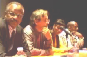 Etat des lieux et perspectives de réparations pour les rescapés : table ronde avec Yolande Mukagasana et des acteurs de la solidarité avec les rescapés du génocide : Tito Mugrefya, psychologue, fondateur de l’association Mpore ; Roland Junod, enseignant à l’école des Hautes études de Genève, fondateur de l’association Les amis de Bisesero ; Bruce Clarke, artiste plasticien, membre de l’association Appui-Rwanda.